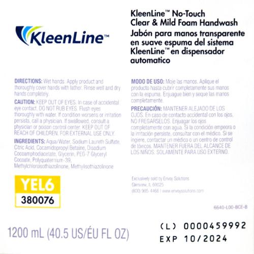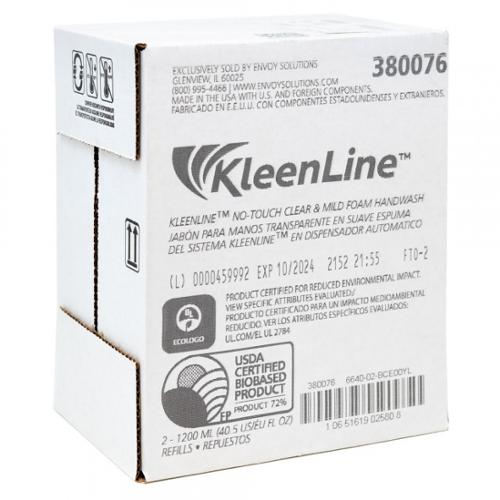 KleenLine No-Touch Clear & Mild Foam Handwash. Spa-inspired foam hand soap that offers a luxurious foam lather and a pleasant fragrance. Enriched with moisturizers and skin conditioners, this handwash delights users while supporting a healthy environment. Fits KleenLine No-Touch Foam Handwash Dispensers: 164956, 164958, 164959.
