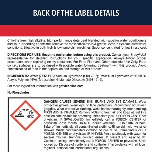 For High and Low Temperature Dish Machines - Chlorine free, high alkaline, high performance detergent blended with superior water conditioners and soil suspending agents that remove the most difficult soils & grease; even in extreme hard water conditions. Effective in both high & low temp dish machines. Super concentrated for low in use cost.