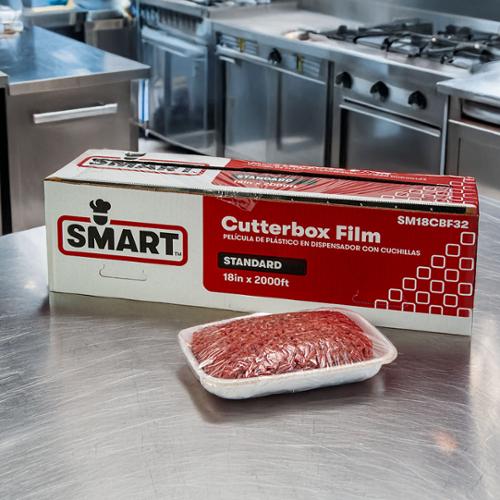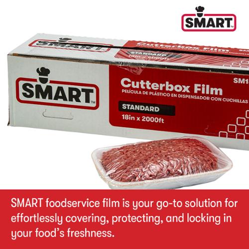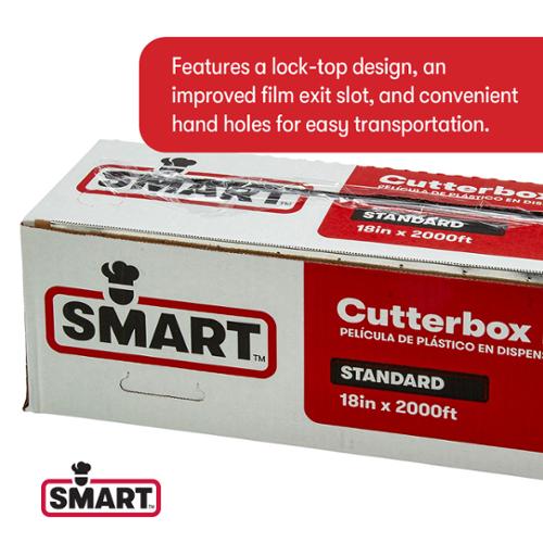 Easily cover, protect, and lock-in your food's freshness with SMART foodservice film! With excellent cling and puncture properties and outstanding clarity, it's the perfect option for foodservice professionals. Available in both light weight and heavy-duty varieties in 3 widths. All of our cutter boxes come with lock top design, improved film exit slot, and hand holes for easy transportation. Our improved cutting edge and extended front flap allow the box to maintain structural integrity.
